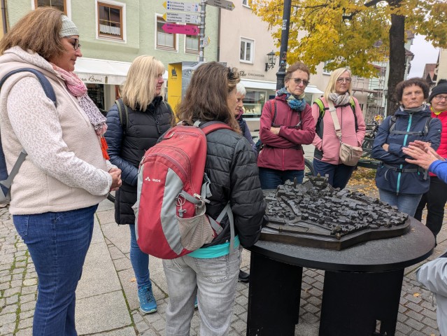Bei schönstem Sommerwetter radelten wir nach Leutkirch. Es stand eine historische Altstadtführung auf dem Programm. Am Gänselieselbrunnen wurden wir von Brigitte K. herzlich begrüßt, so wie auch von unserem Stadtführer Herr Uptmoor. Die Erkundung begann am Gänsbühl, Platz für Feste, Märkte und ein Brunnen der versorgte Mensch und Tier. Vor uns das Rathaus und der Bockturm, weiter durch die Schneegasse, altes Kloster und geistliches Viertel. Ein Stadtbach führte durch das Schlachthaus jetzt (Uhren Notz), er diente auch zur Entsorgung von Abfällen. Weiter verlief der Bach ins Gerberviertel, hier wurde das Wasser auch dringend gebraucht. Es gab drei Stadttore, das untere Memminger Tor, schloss die nördliche Marktstraße mit dem Viehmarkt ab. Nach interessanten 1,5 Stunden Geschichte endete unsere Stadtführung. Anschließend stärkten wir uns beim Stadtwirt.