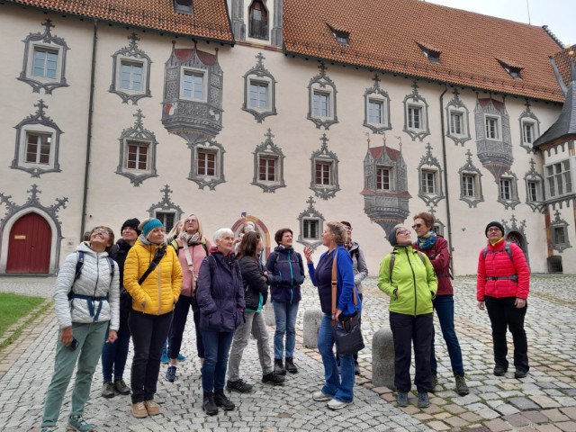 Am Samstag, den 11.Oktober 25, machten sich 14 Sportmädels auf den Weg zu einem gemeinsamen Ausflug. Der erste Halt war Dietmannsried, wo die Gruppe in gemütlicher Runde ein reichhaltiges Frühstück einnahm und gestärkt in den Tag startete. Anschließend ging es nach Füssen, wo eine historische Altstadtführung auf dem Programm stand. Füssen blickt über eine 700-jährige Stadtgeschichte zurück. Über die Handelsroute "Via Claudia Augusta", die für die Handwerker sehr bedeutsam war. Beim Rundgang durch die engen Gassen erfuhren wir viel über die Menschen im Mittelalter, der Handelszünfte, den Lauten- und Geigenbau. Beeindruckend war auch das Hohe Schloss, von dort hatten wir einen herrlichen Blick über die Dächer von Füssen und den Lech. Nach der Führung gönnte sich die Gruppe eine kleine Stärkung, bevor es weiter zum Kalvarienberg ging. Dort wurden die 14 Stationen des Weges erklommen, oben angekommen wurden wir von einer schönen Rundumsicht belohnt. Danach führte der Weg zum beeindruckenden Lechfall bevor der Nachmittag bei gemütlicher Kaffeepause ausklang. Zum gemeinsamen Abendessen ging es zurück nach Weitnau, wo der gelungene Ausflug in fröhlicher Runde seinen Abschluss fand.